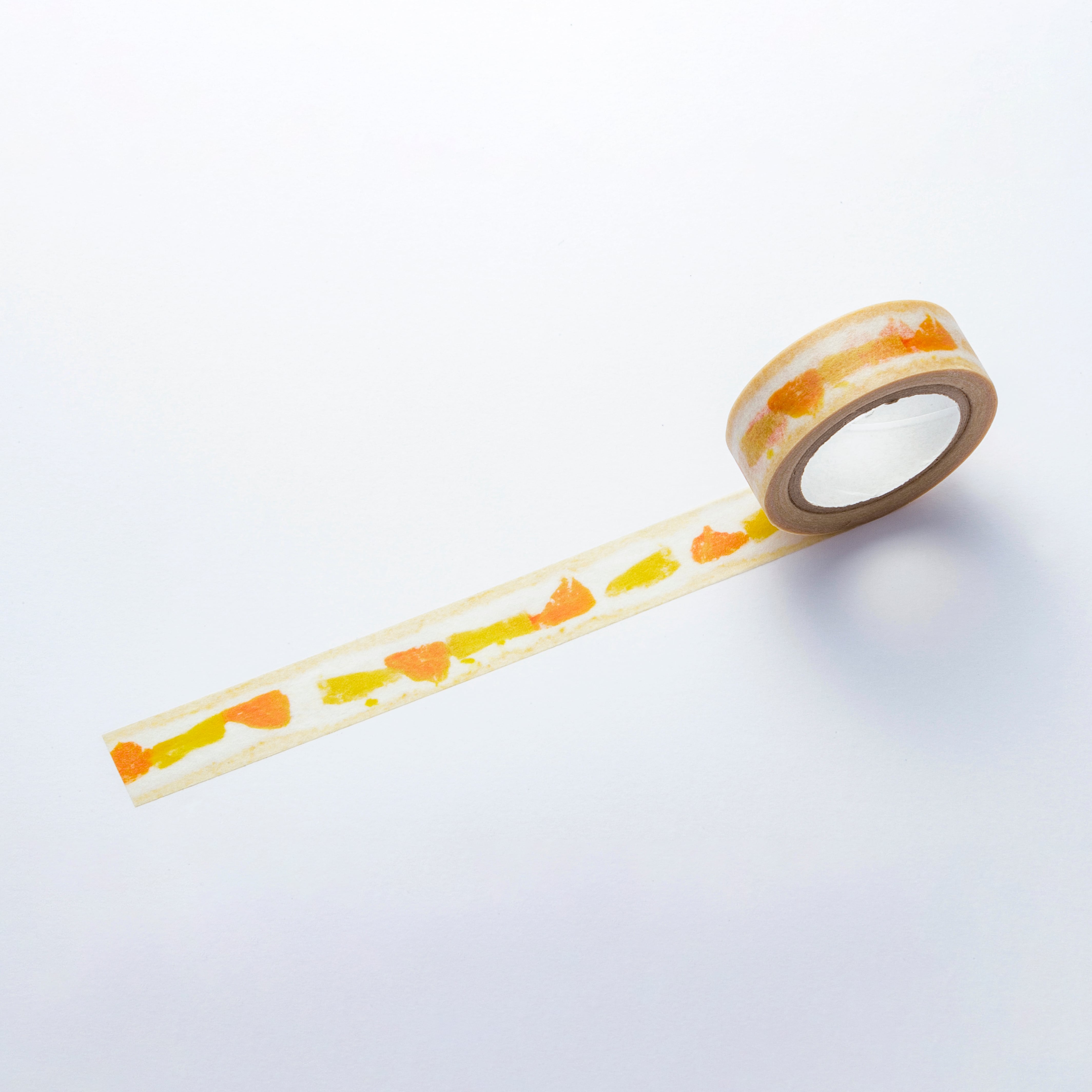 Washi tape of orange and pineapple fruit sandwiches with bright yellow color.The tape is made of thin and smooth Japanese paper, and is flexible and strong enough not to break off when peeling.